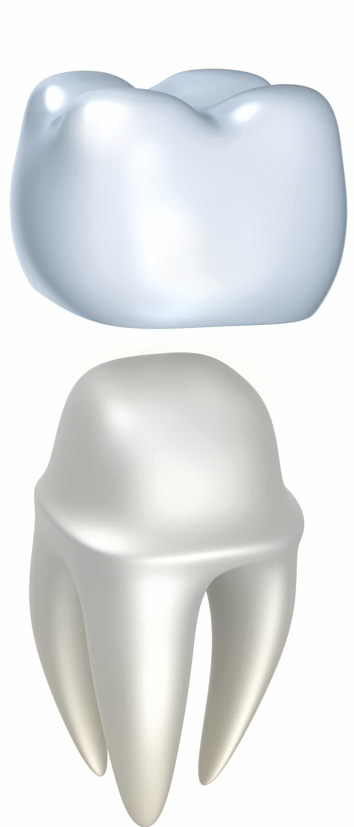 A dental crown is a restoration that covers or caps a tooth, restoring it to its normal size and shape while strengthening and improving its appearance. Crowns are necessary when the tooth is broken down to the point where a filling will not be effective.